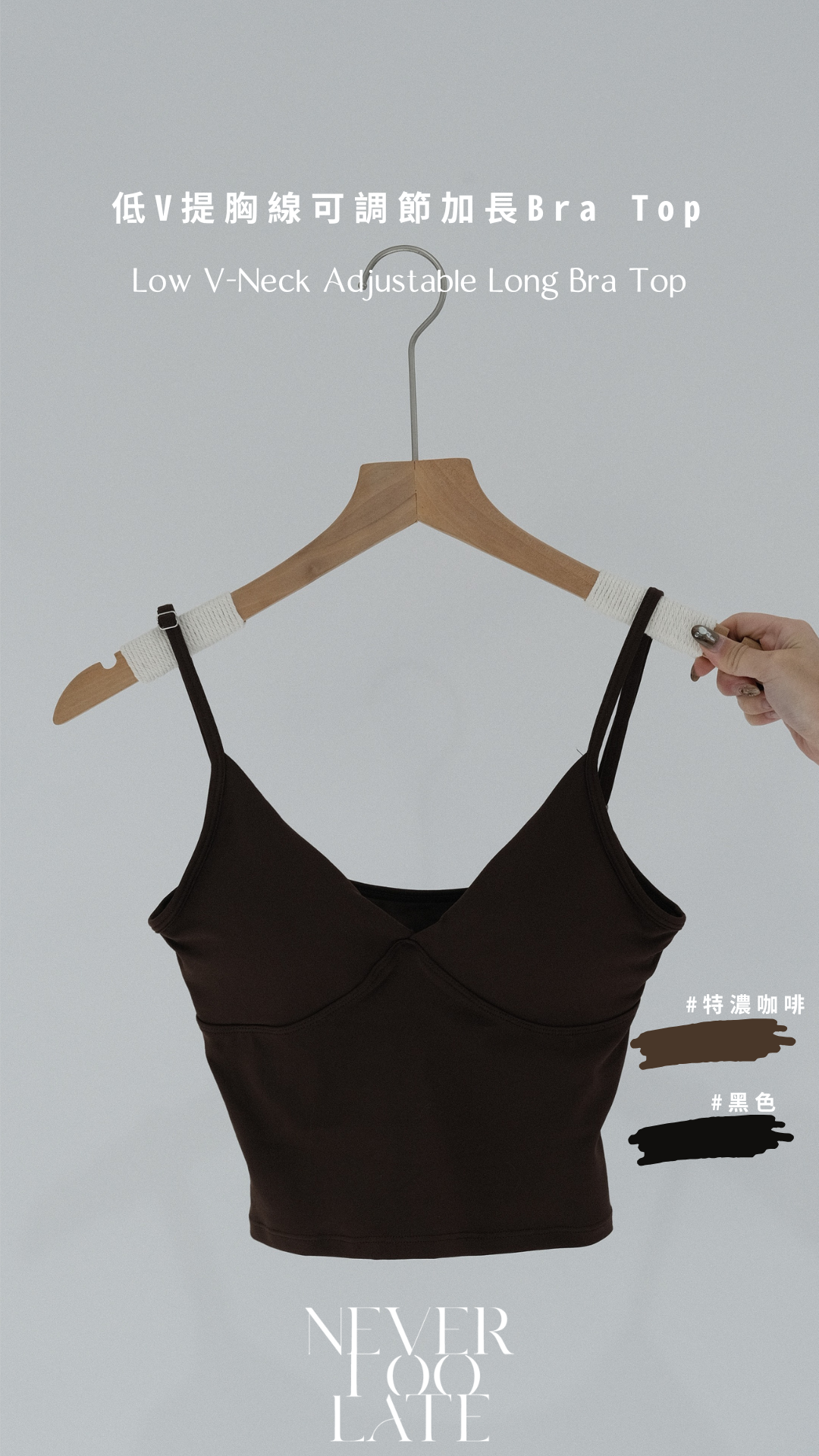 NVTT463- 咖啡低V提胸線可調節加長Bra Top