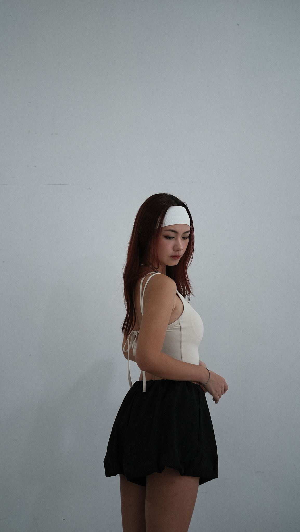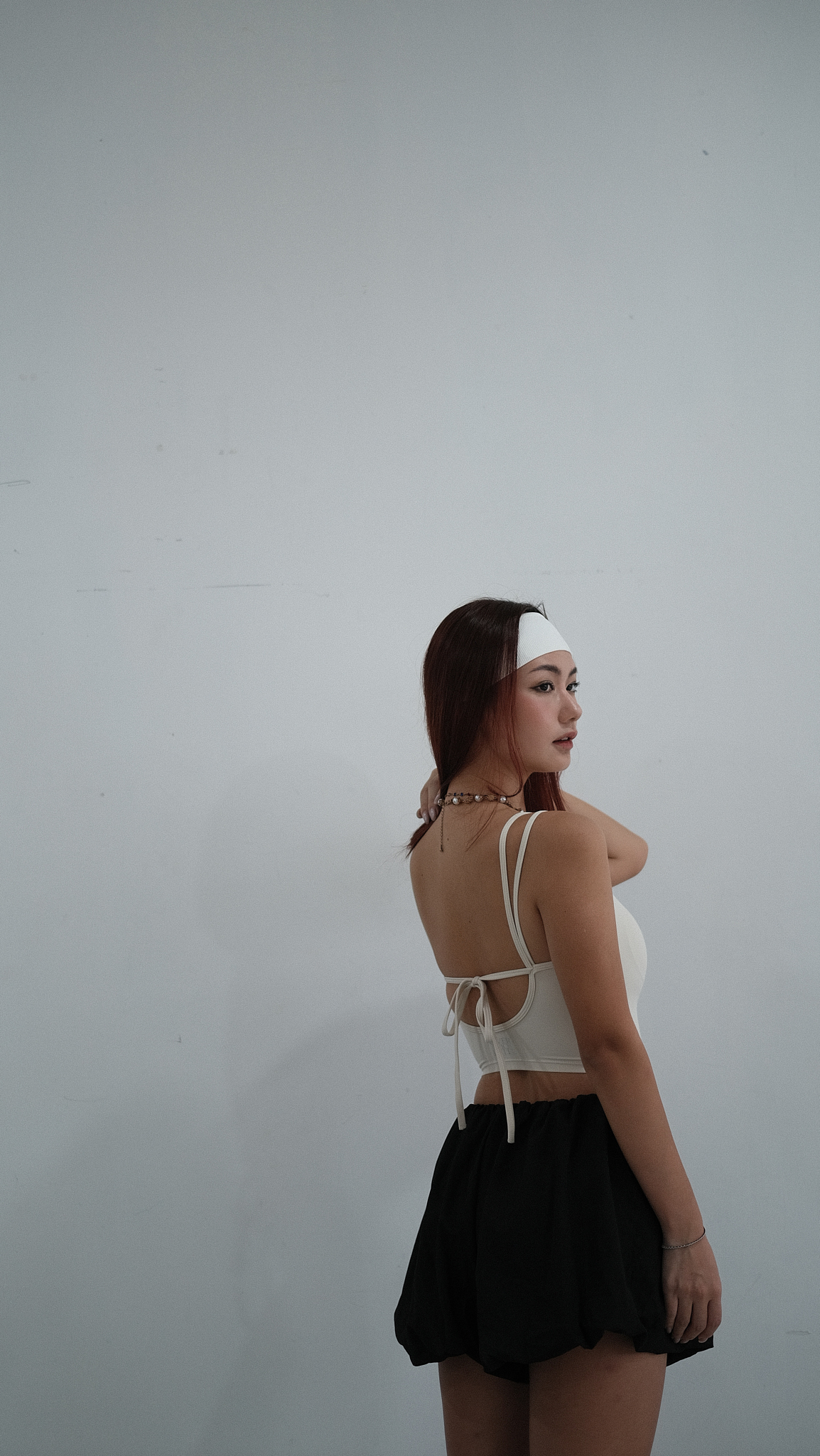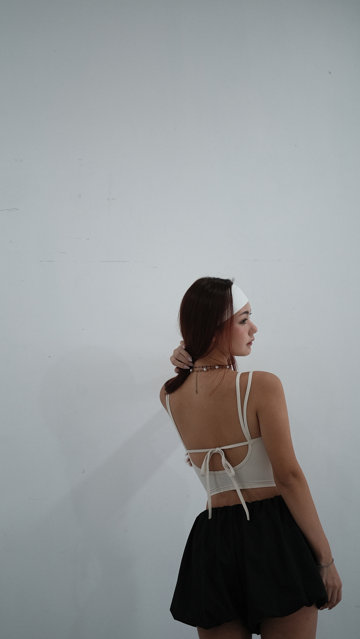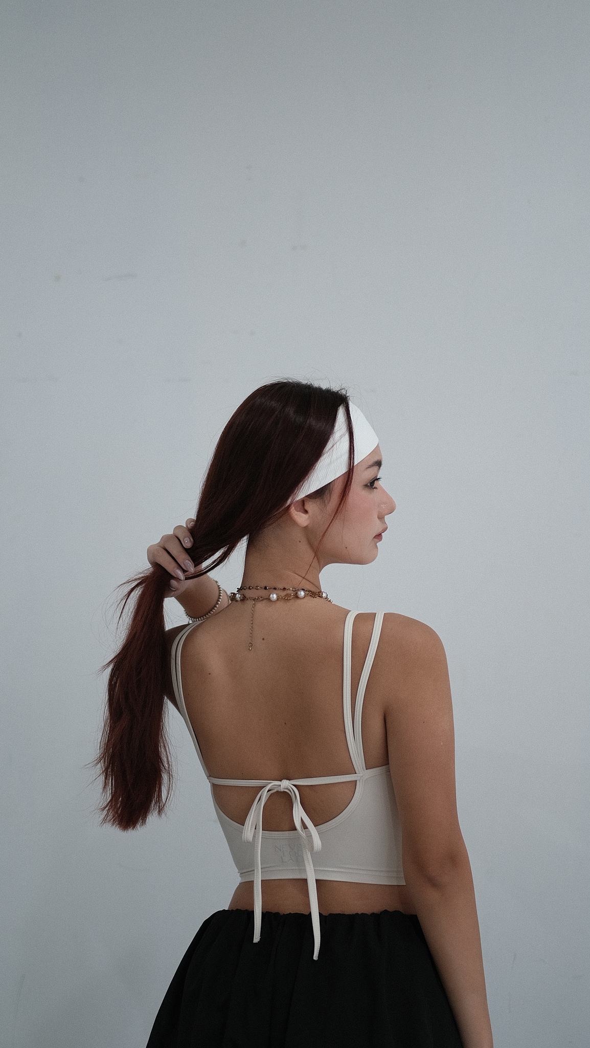 NVTT482- 象牙白雙帶後綁帶收腹透薄長Bra Top
