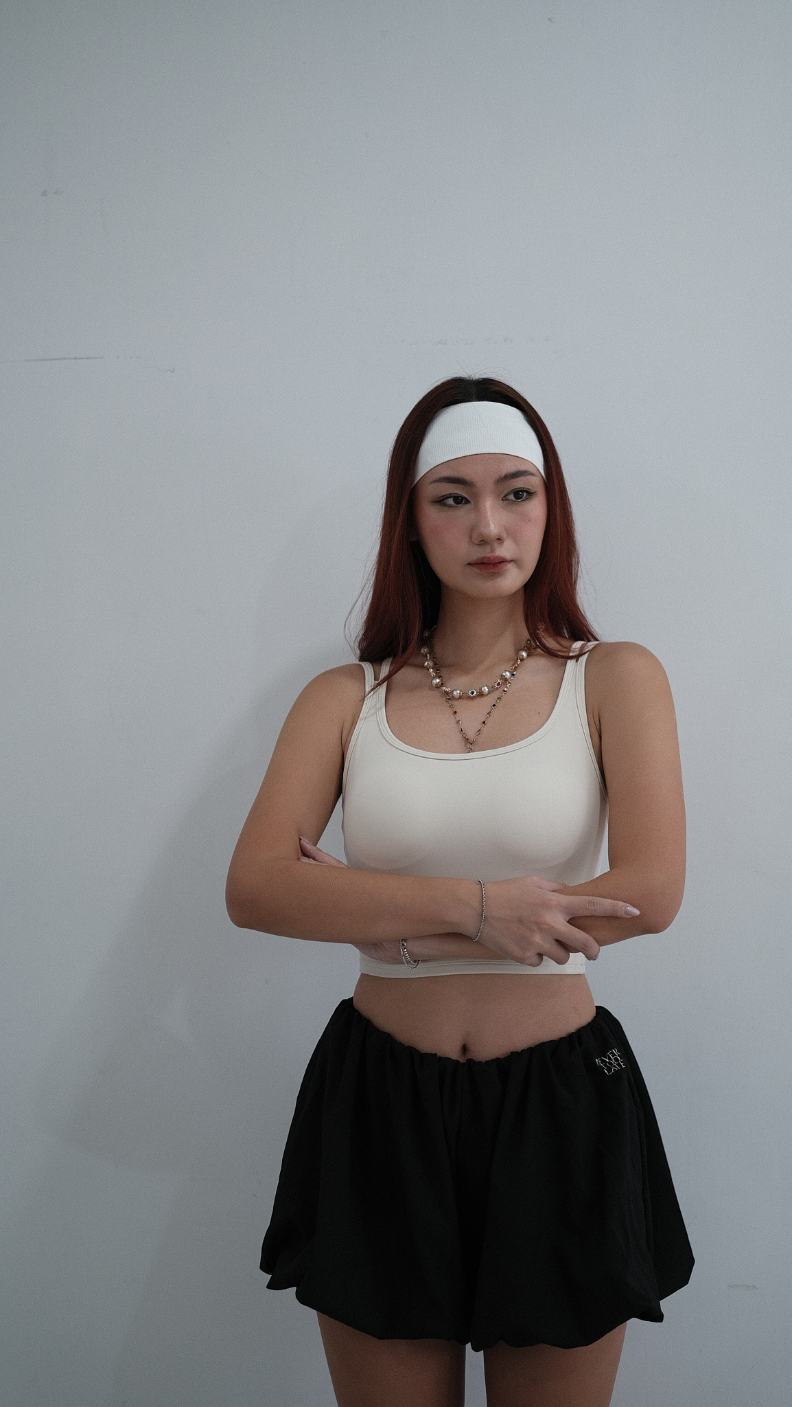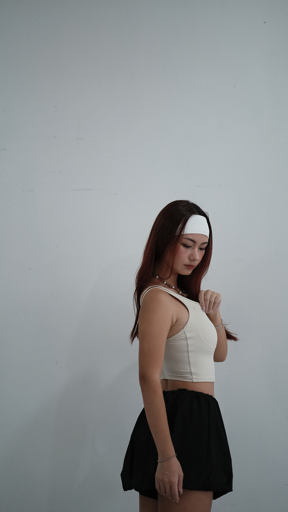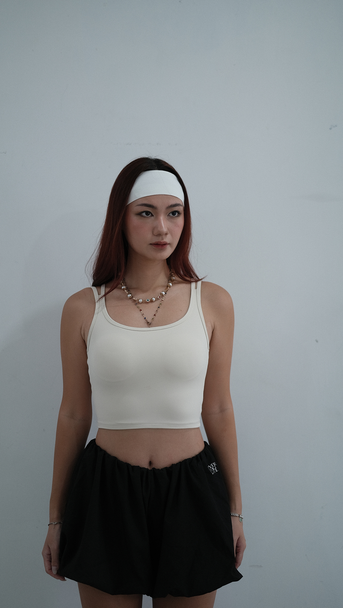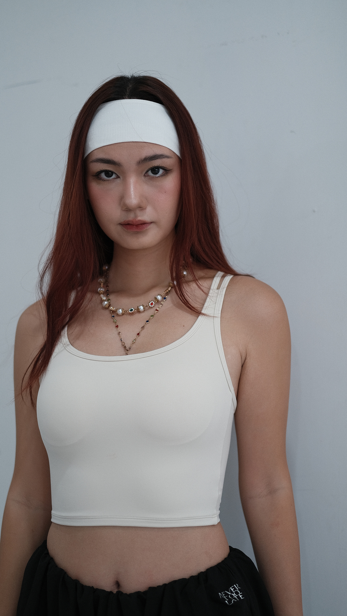 NVTT482- 象牙白雙帶後綁帶收腹透薄長Bra Top
