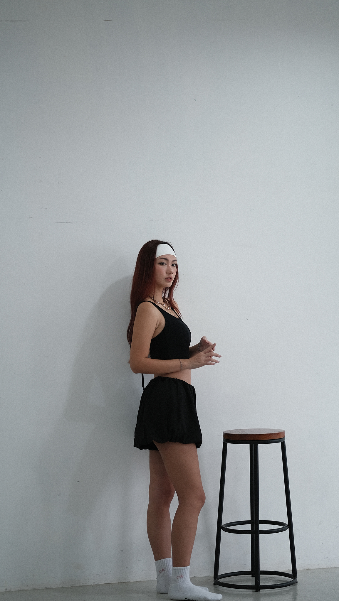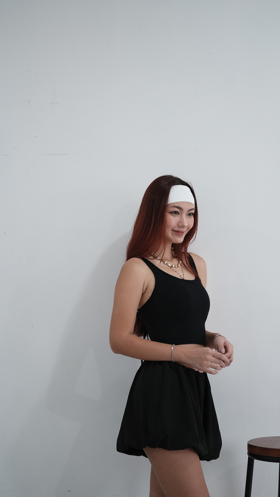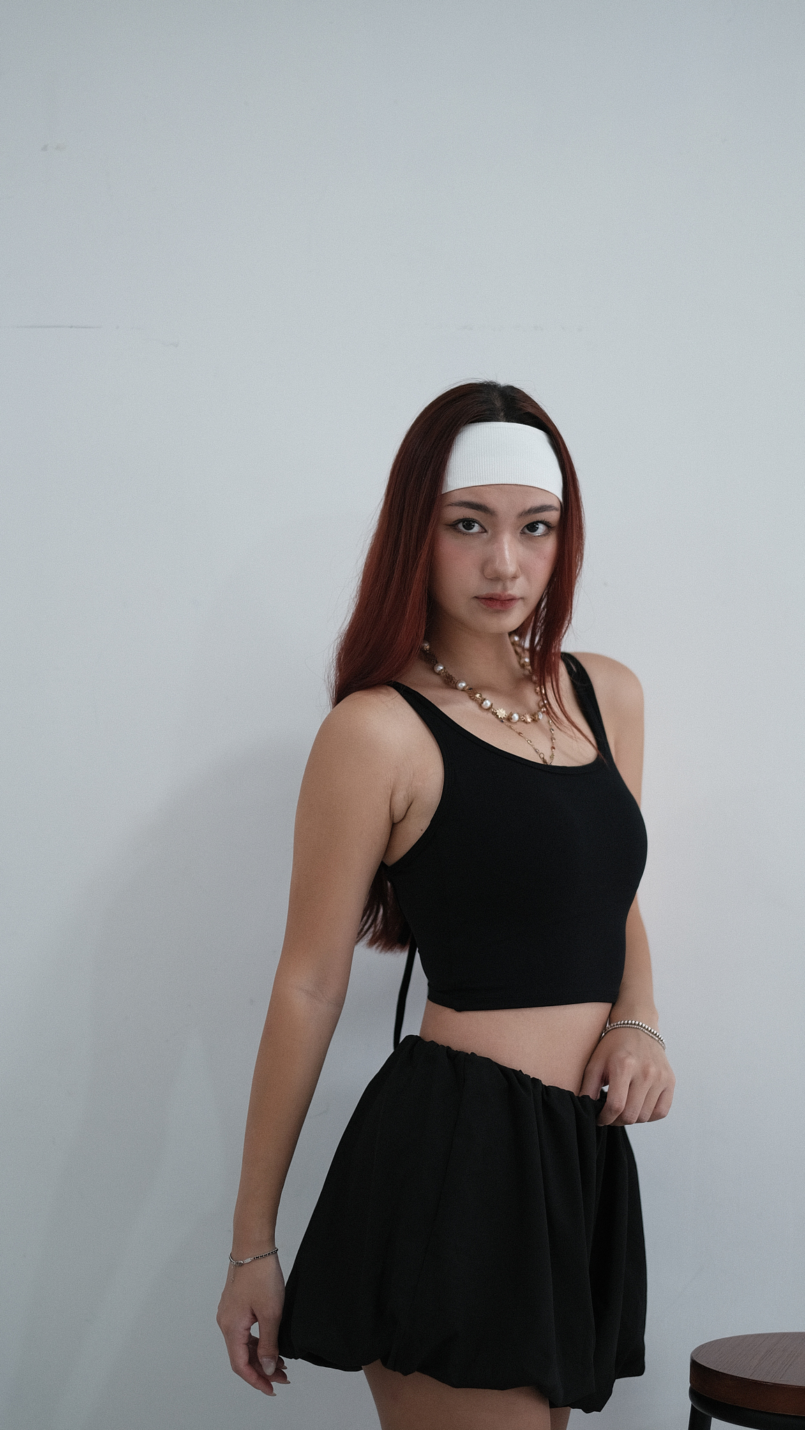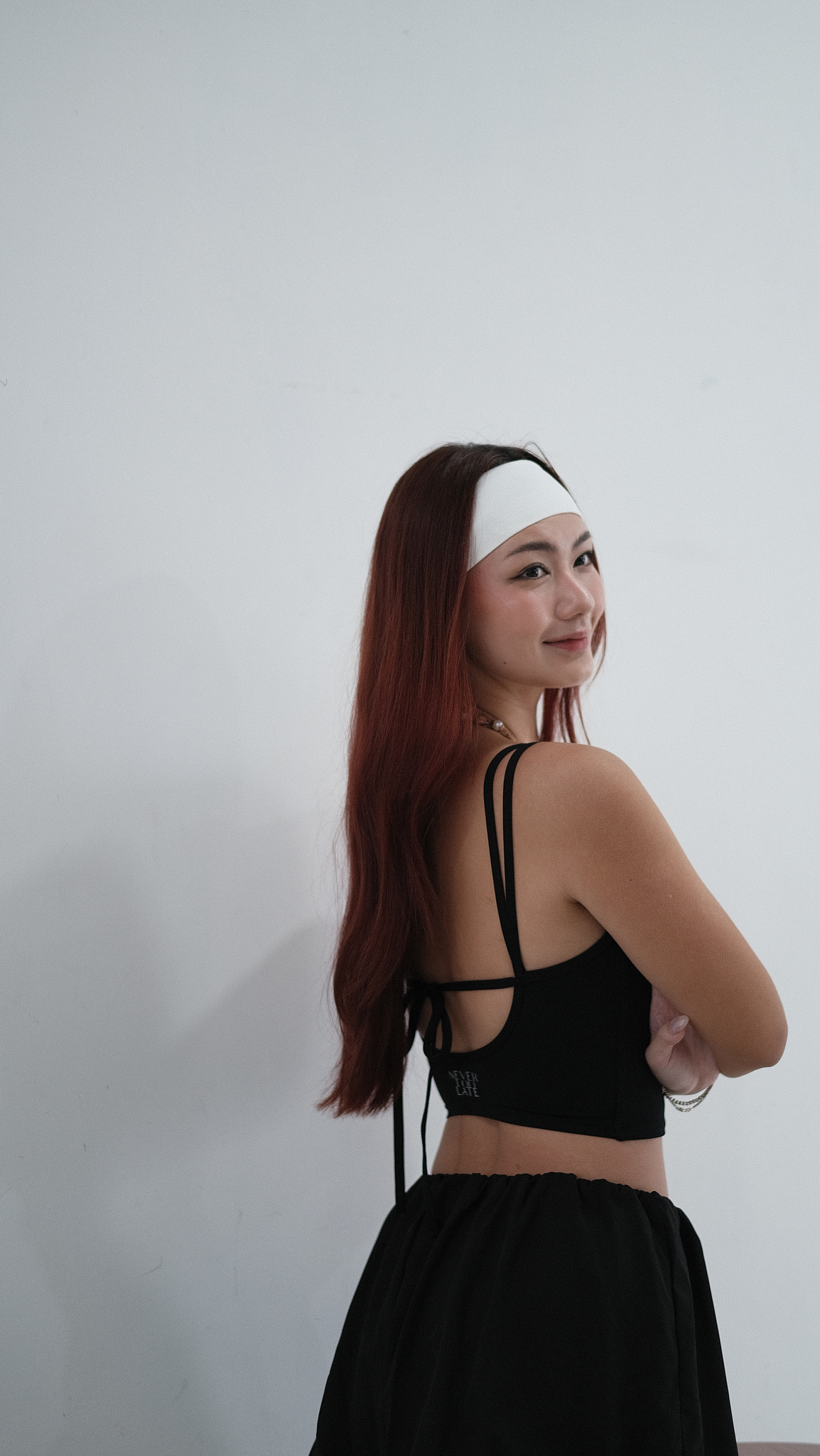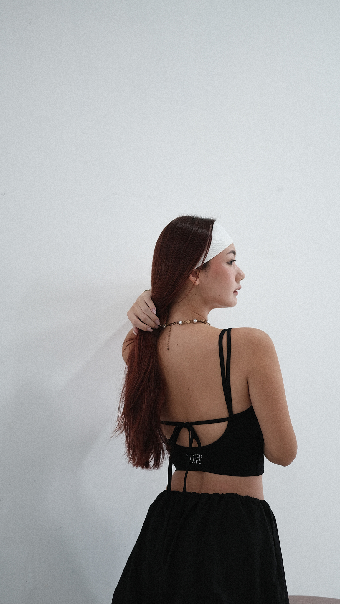 NVTT484- 黑色雙帶後綁帶收腹透薄長Bra Top