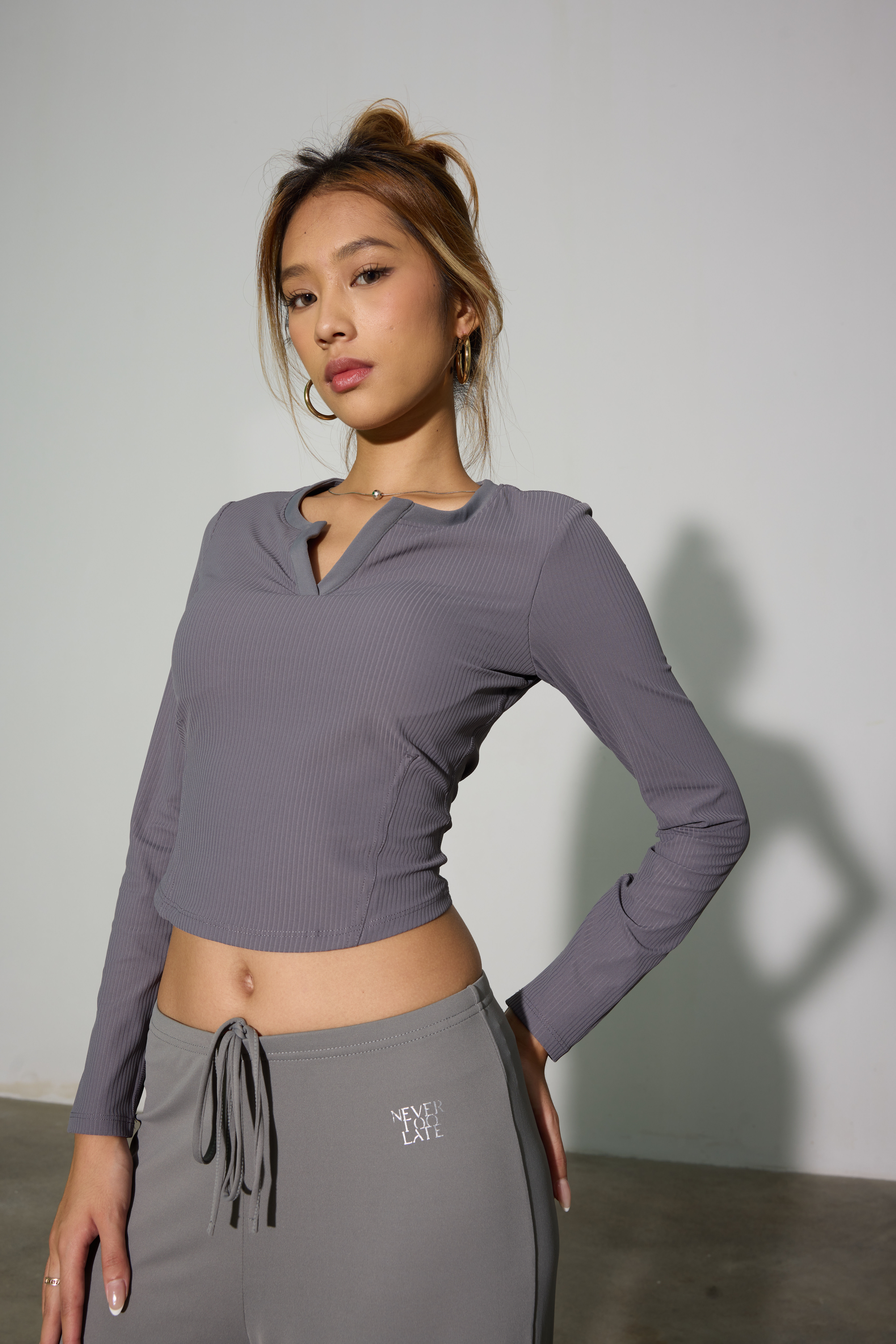 款式定位:長袖、套頭、及腰剪裁(Crop Top),修身顯瘦。