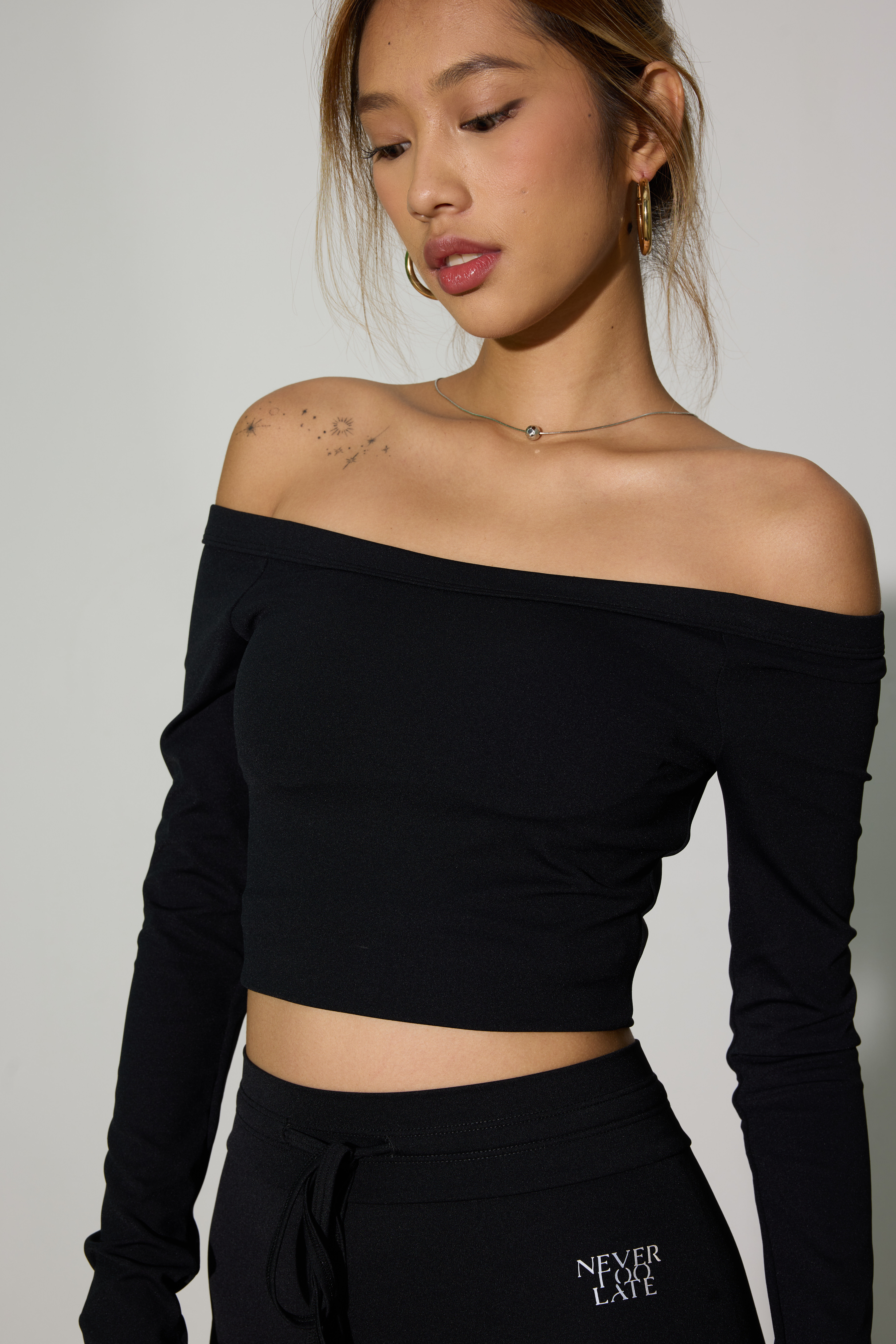 一字肩設計 (Off-the-Shoulder Design):這是一個核心亮點。領口採用寬版設計,可以拉下一邊或兩邊,形成時尚的一字肩效果,巧妙露出鎖骨和小香肩。